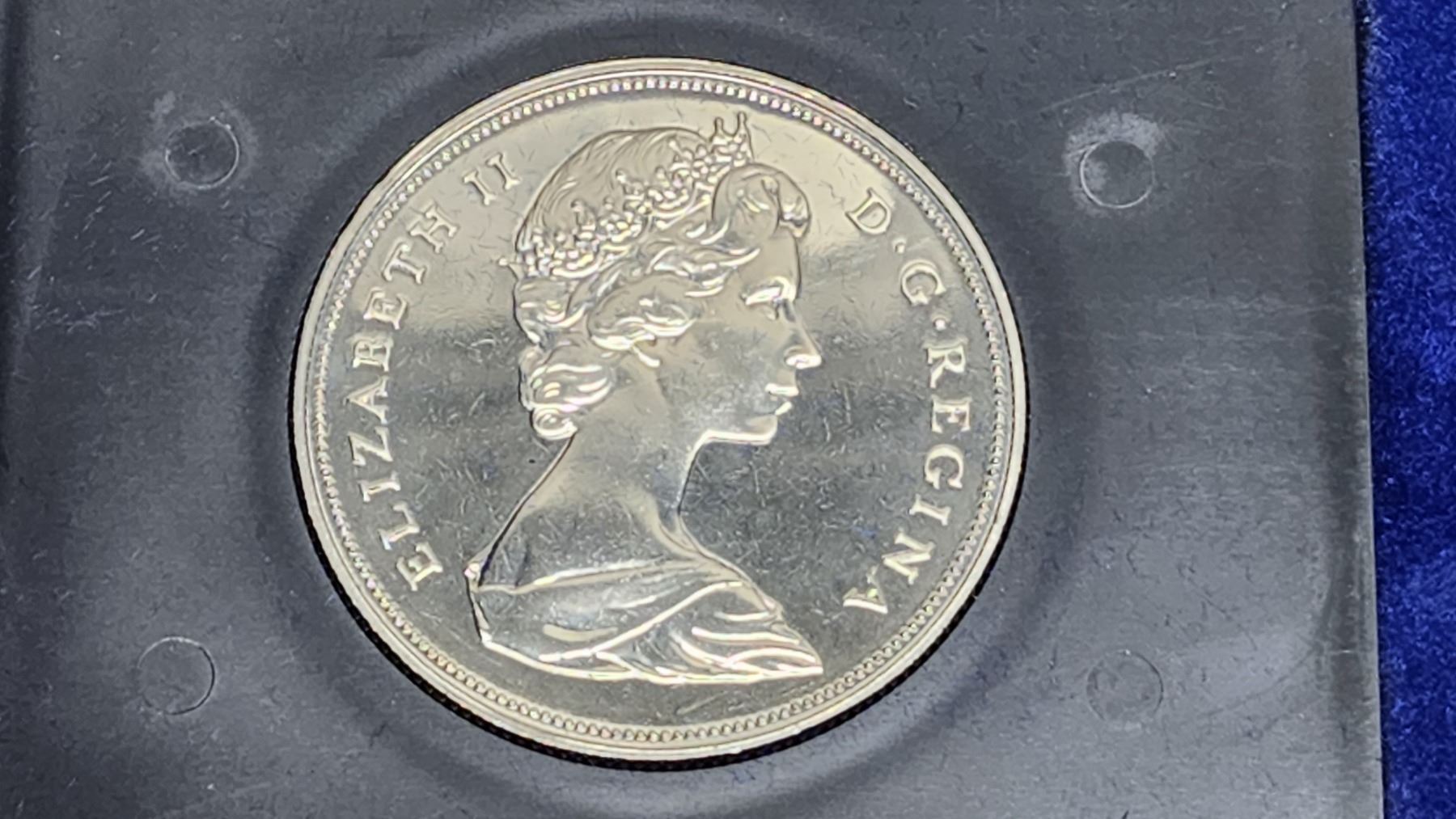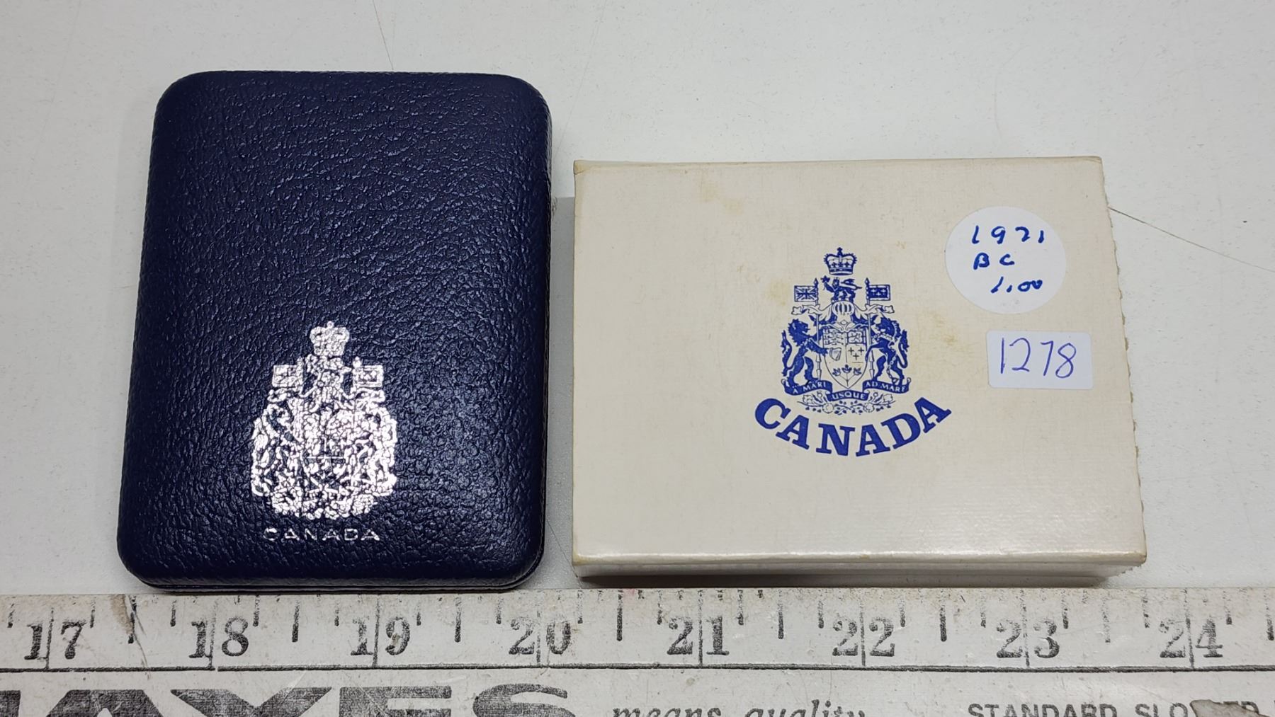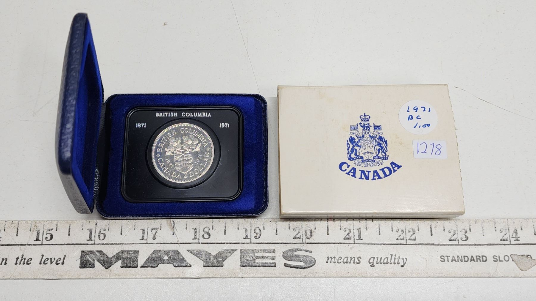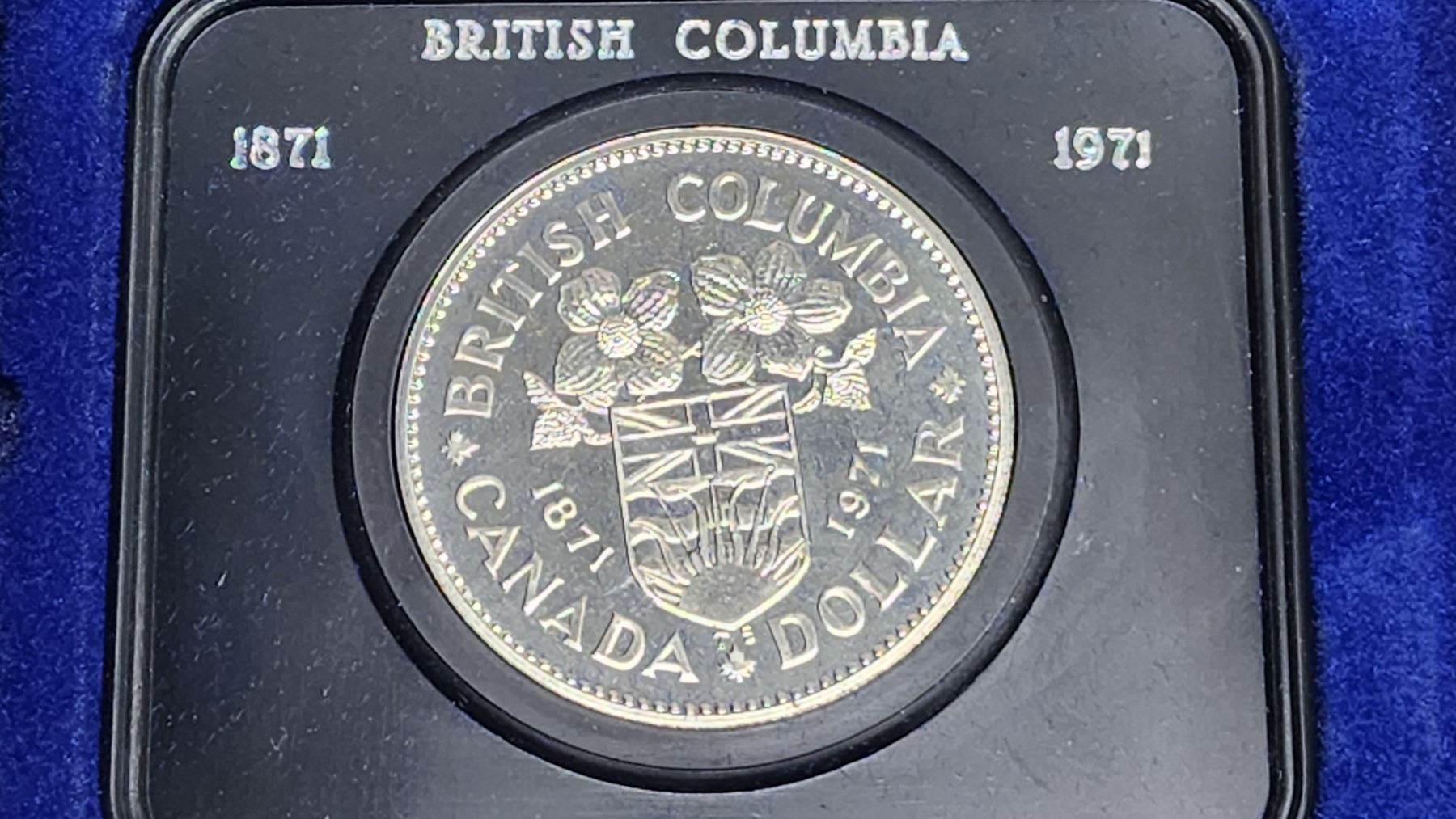 1971 British Columbia Centennial Canadian silver dollar - in clam shell case