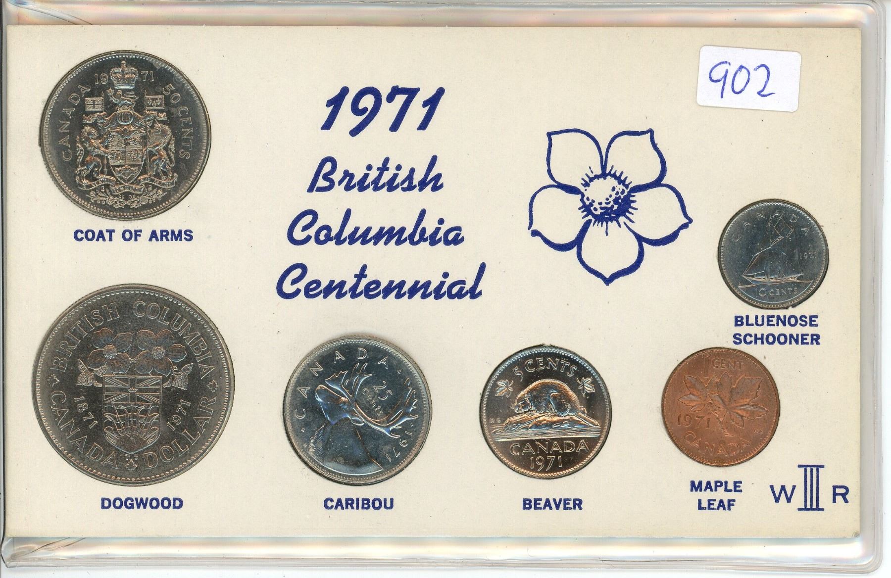 1971 British Columbia Centennial Year Set. 6-coin set.