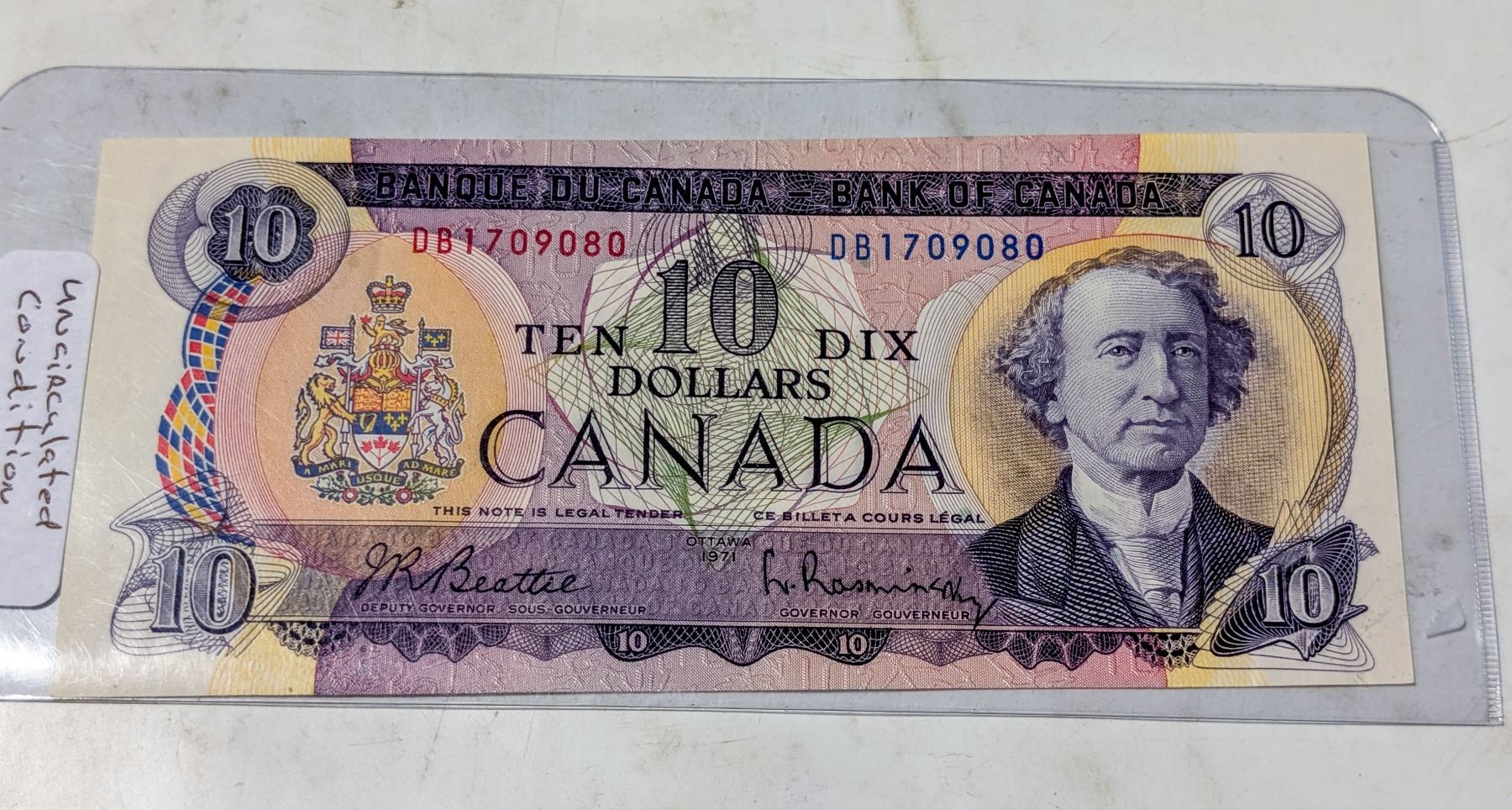 1971 CANADA $10 BANKNOTE. MAJOR CUTTING ERROR
