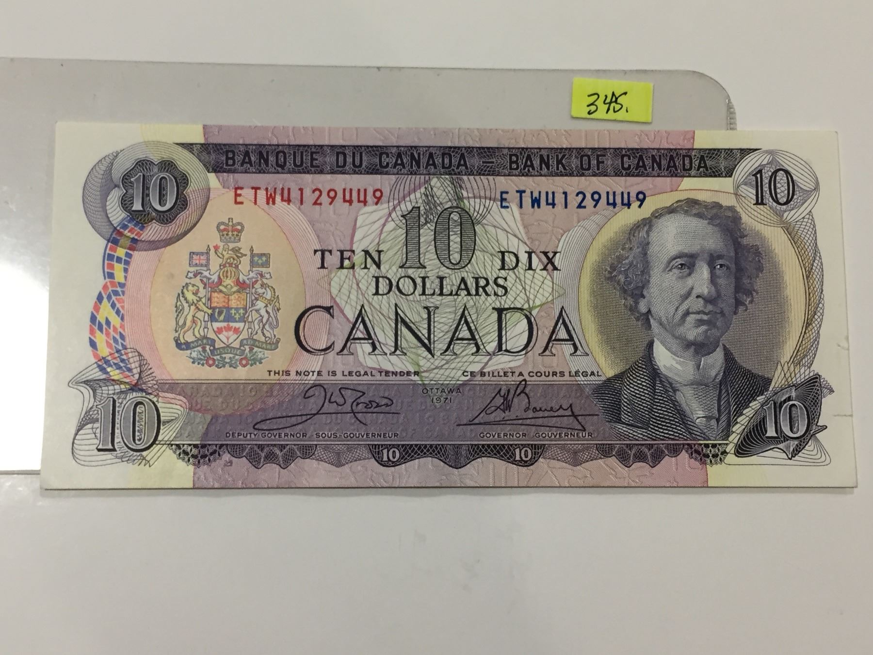 1971 Canada Ten Dollar Bill - Crow/Bouey - Ser.# ETW4129449 - Uncirc.