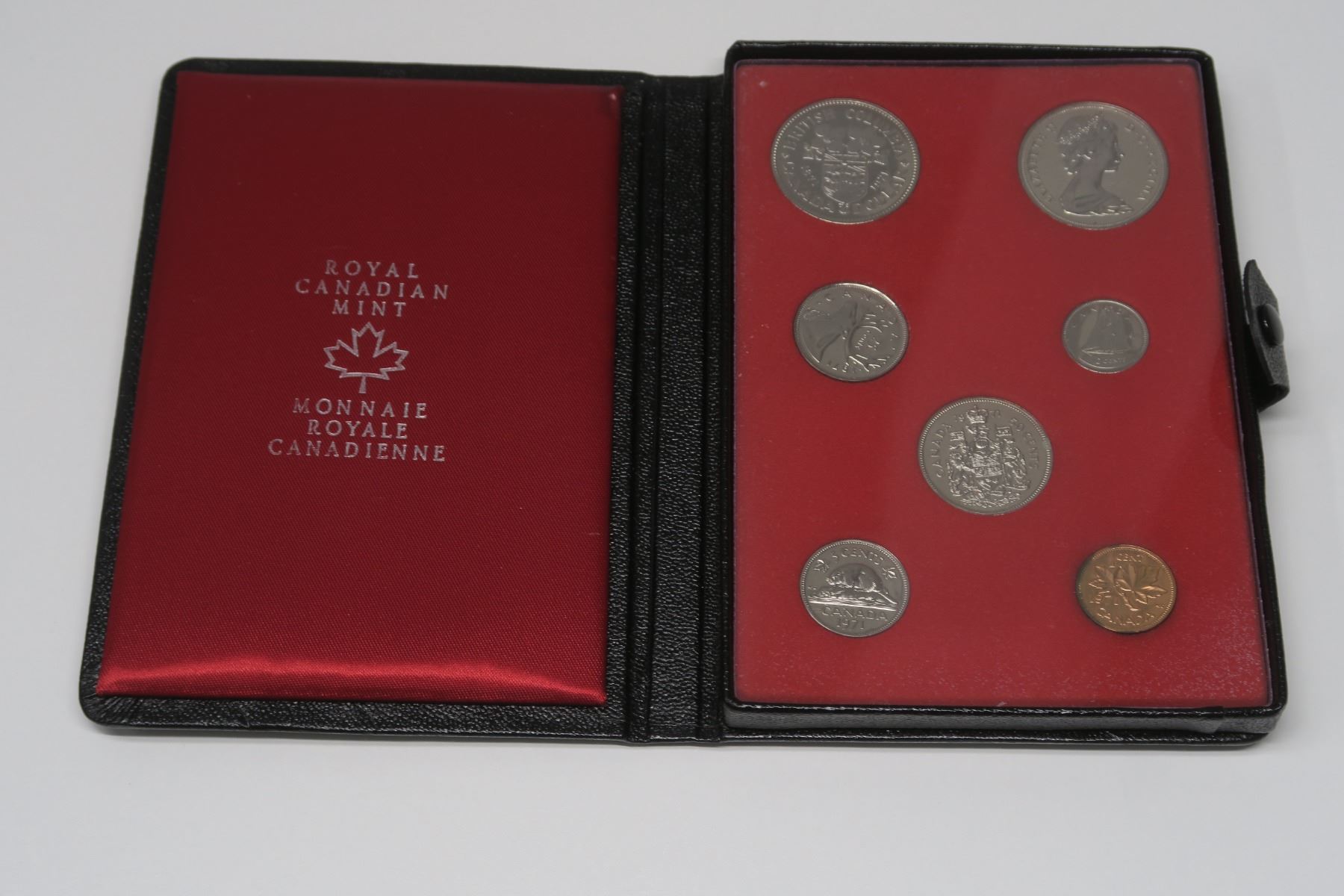1971 Canadian 7-coin Prestige Double Dollar Specimen Set. Contains 2 Dollars, both celebrating the 100th Anniversary of British Columbia joining Canada in 1871. Specimen. In original case of issue.