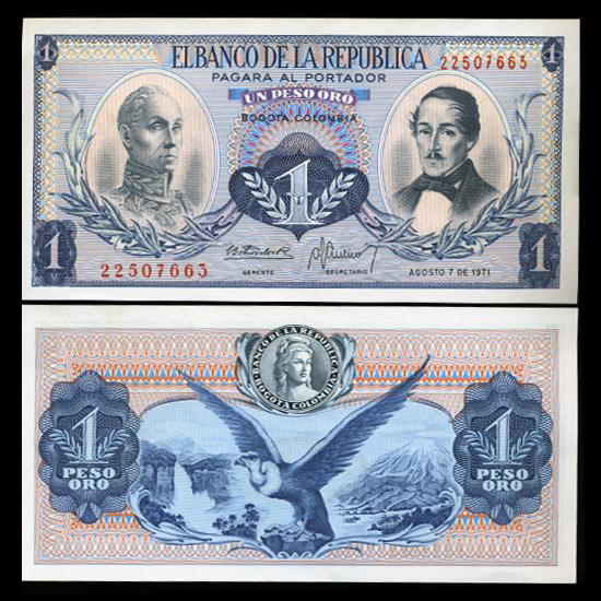 1971 Colombia 1 Peso Crisp Uncirculated Note (CUR-05822)