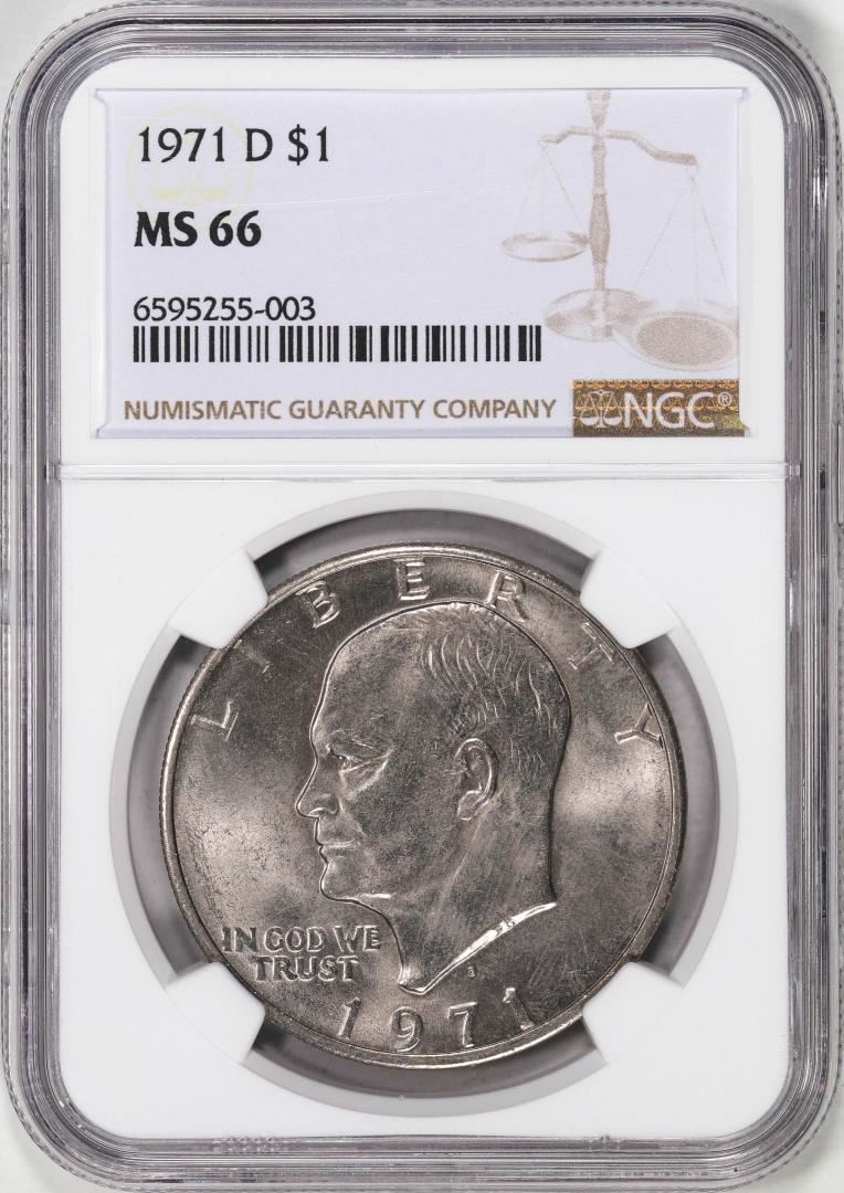 One 1971-D $1 Eisenhower Silver Dollar Coin NGC MS66. NGC Certified.