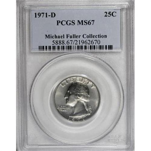 <B>1971-D 25C MS67 PCGS.</B></I> Michael Fuller Collection. PCGS Population (45/0). NGC Census: (23/2). Mintage: 258,634,432. (#5888)<BR><BR><B>Coin Engraver:</B> John Flanagan<BR><BR><b>Shipping:</b> Coins & Currency (<a target="_blank" href="http://www.heritageauctions.com/common/shipping.php">view shipping information</a>)