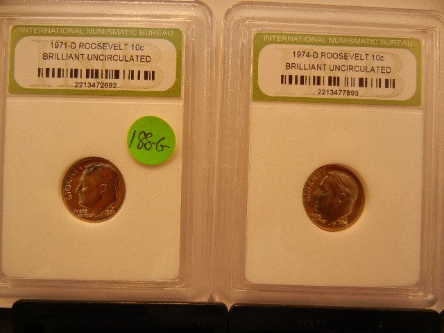 1971 -D BU UNC. Roosevelt Dime & 1974-D BU UNC.Roosevelt Dime Graded By INB