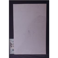 This one is of two Masquerade Ball costumes for the Pinocchio stage performance according to the pencil notes. This appears to be signed on the top by the artist, but I can not determine the first name. Something Fox? Could be the Character name. There is the main artwork, but there is also a very nice colored secondary character in a smaller scale. On the back side is yet another sketch that looks to be a first attempt, and lots more notes.