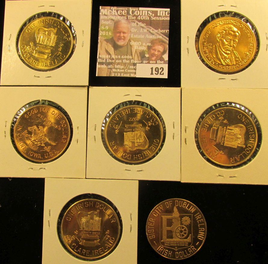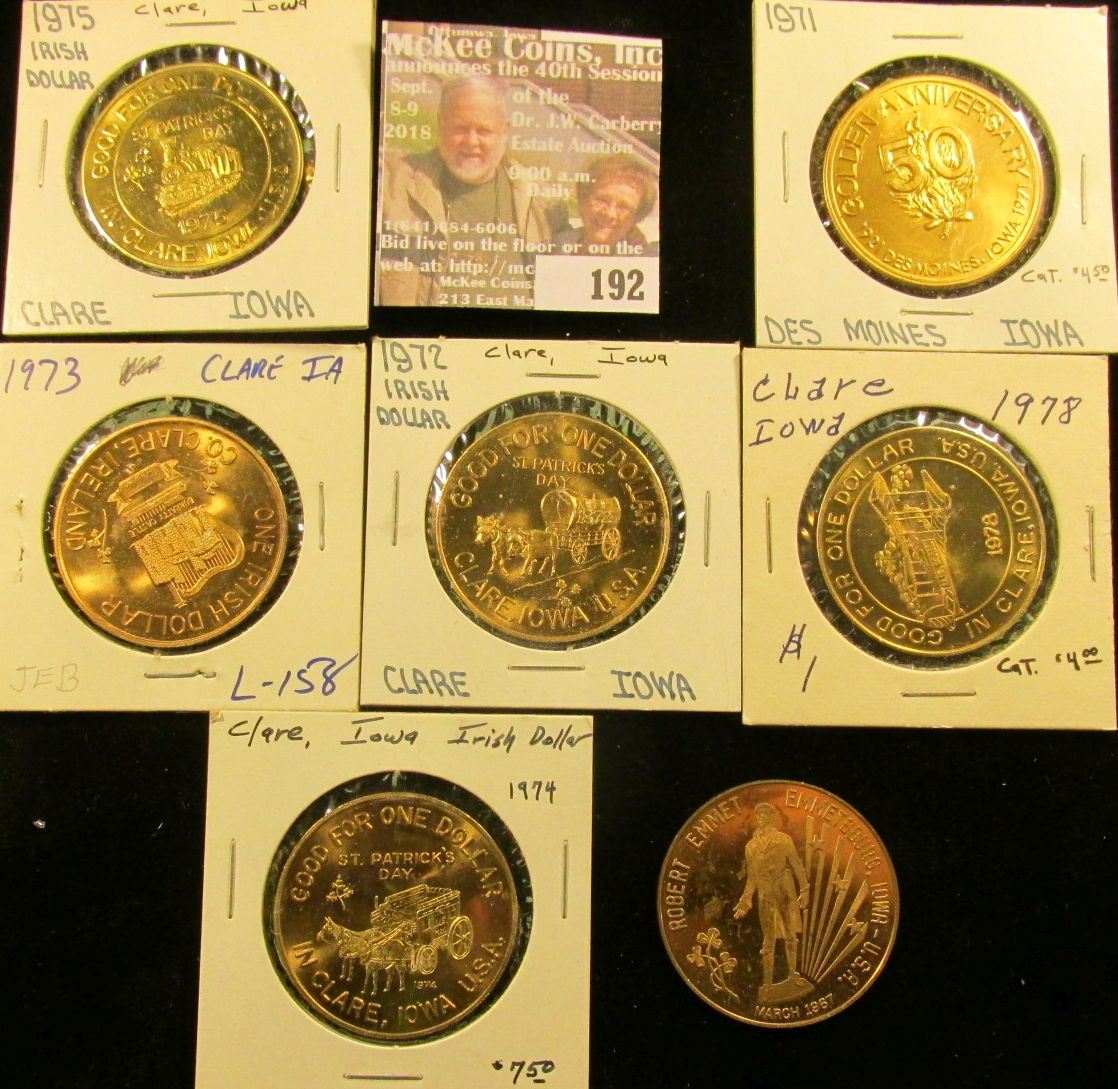 1971 Des Moines, Iowa Golden Anniversary Medal; & (6) different Irish Dollars from Iowa.