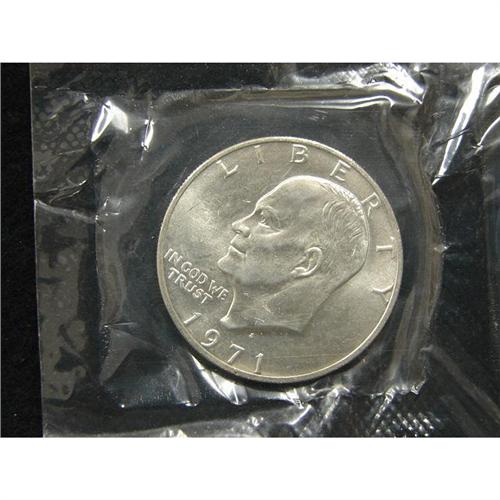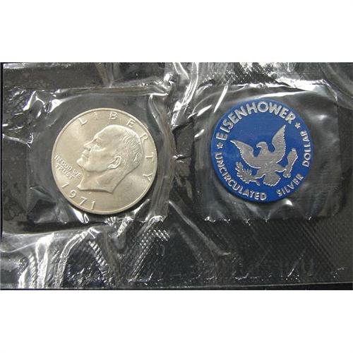 1971 EISENHOWER SILVER DOLLAR. Unc. With U.S. Mint envelope.