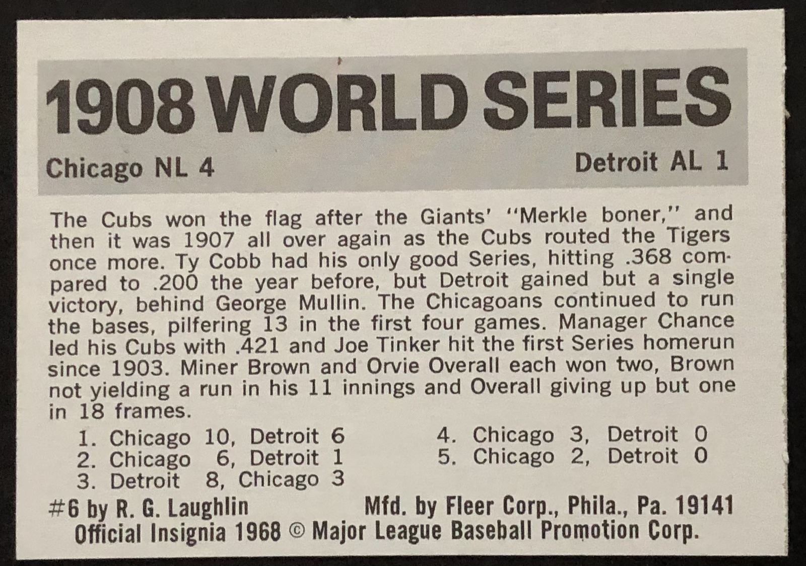 Card #6 baseball, MLB, hall of fame, vintage