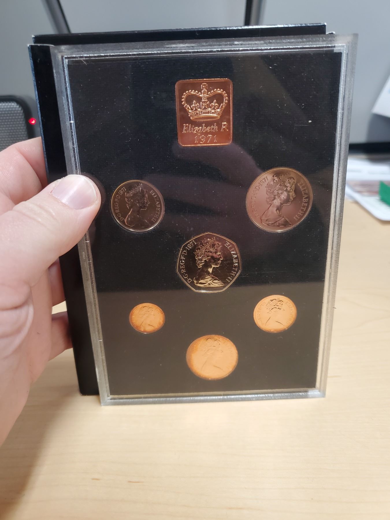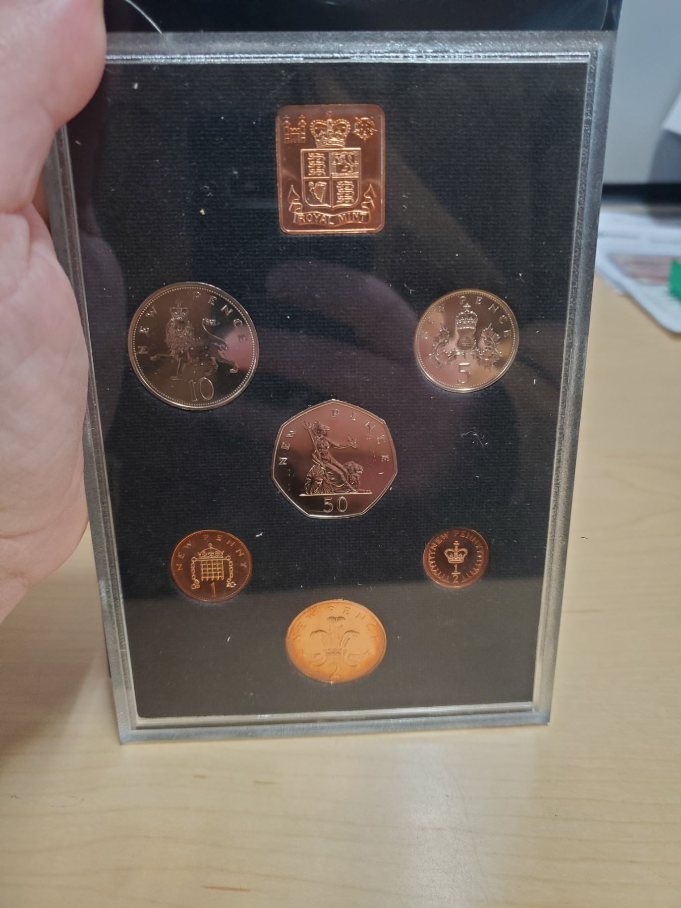 1971 First Decimal Coinage of Great Britain & Northern Ireland. 7-coin set includes up to the 50 Pence. Housed in its original case & box of issue. Proof.