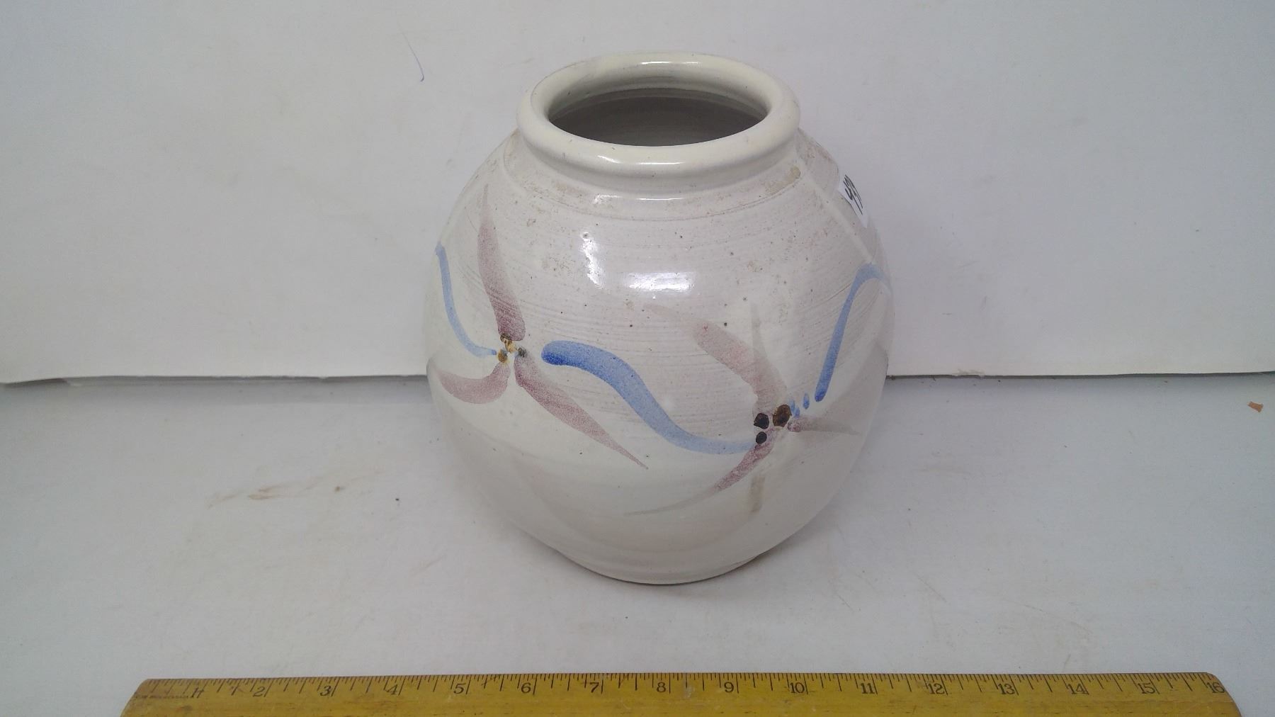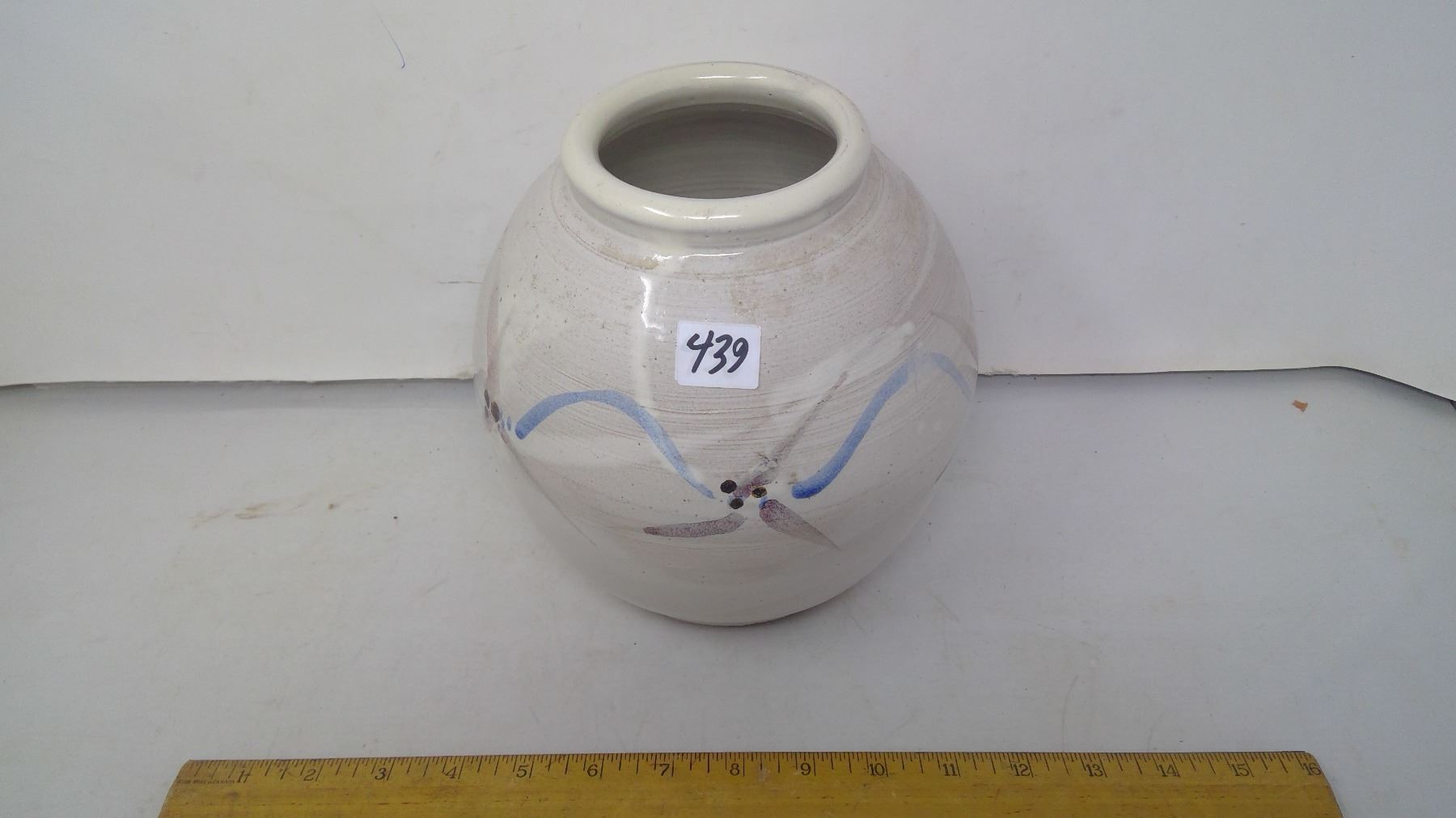 439 – 1971 handmade turned pottery case by Ted Snow. Height: 8”.