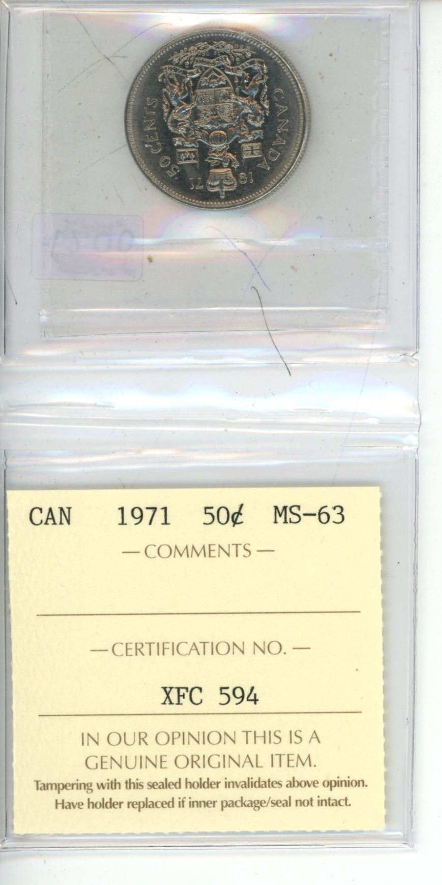 1971 ICCS Graded - Canadian Fifty Cent - MS63