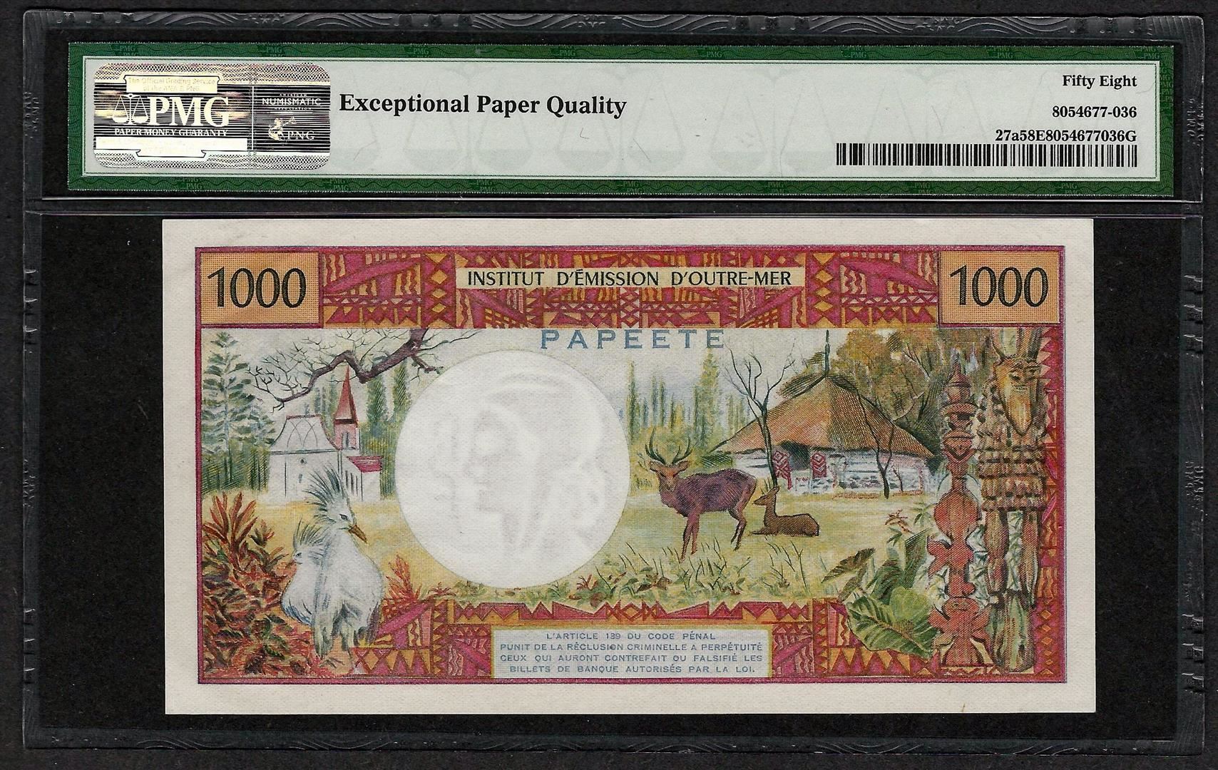 1971 Institut d'Edmission Tahiti 1000 Francs Note Pick 27a PMG Choice About Unc 58EPQ