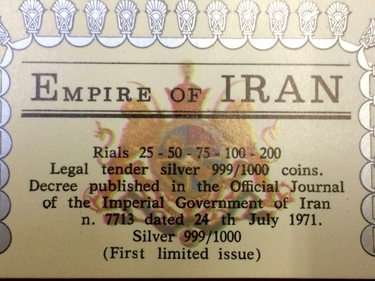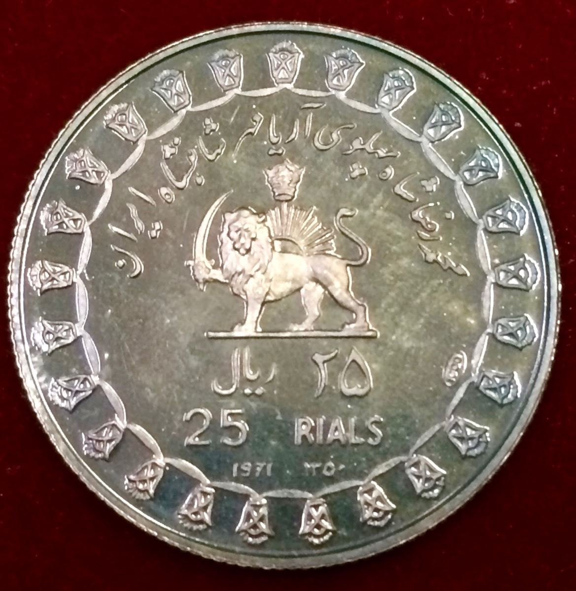 1971 Iran 25 Rials Proof Silver Coin, No Tax