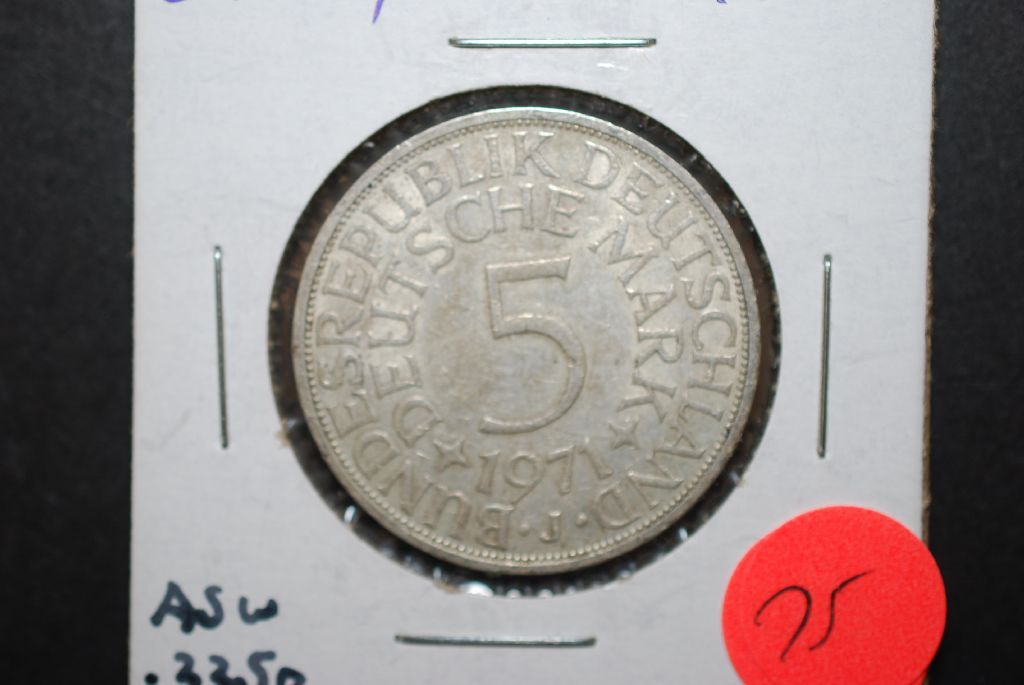1971-J German 5 Deutsche Mark Foreign Coin; .2250 ASW; EST. $10-15