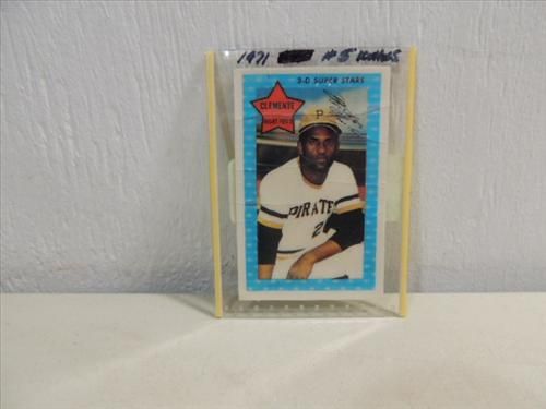 1971 KELLOGGS #5 3D BASEBALL CARD ROBERTO CLEMENTE. CRACKS ON FRONT OF CARD. AS SHOWN. VIEW PICTURE FOR DETAIL.