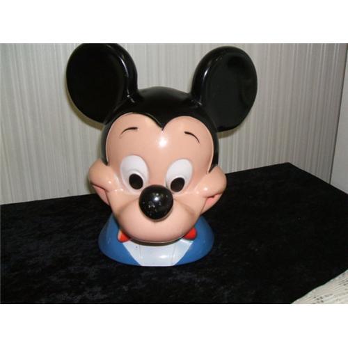 1971 Large Mickey Mouse Bank. Hard Plastic. 10 inches Tall and 9.5 inches wide. Great condition less a few scuffs. Print on bottom reads Walt Disney Prod 1971 Play Pal Plastics. Also stamped with backwards K14.