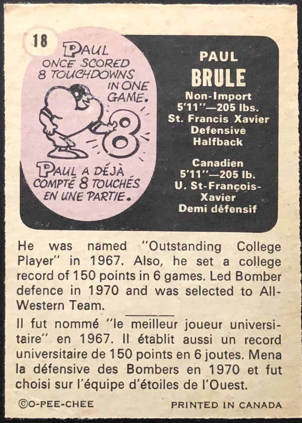 Card #18 football, vintage, OPC
