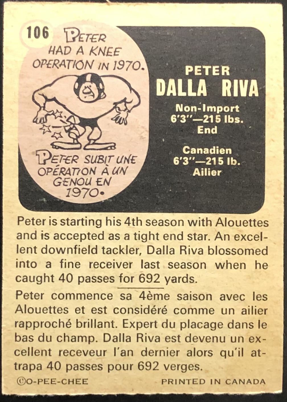 Card #106 football, CFL, OPC, vintage, hall of fame