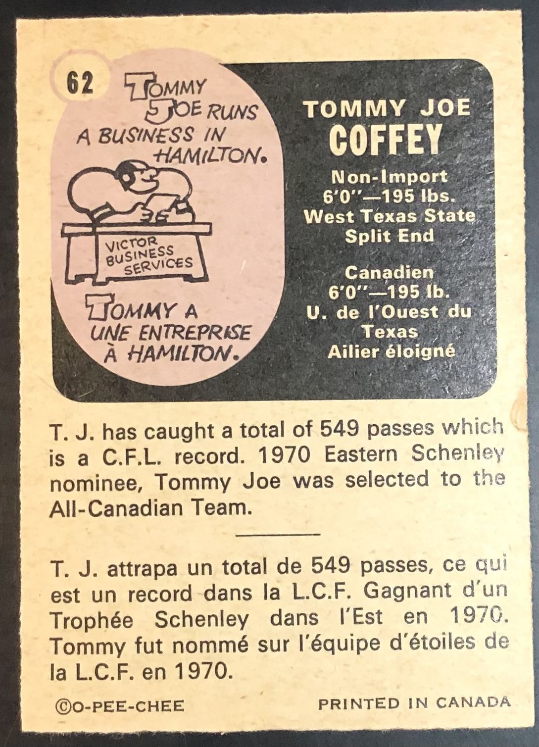 Card #62 OPC, vintage, CFL, football, hall of fame