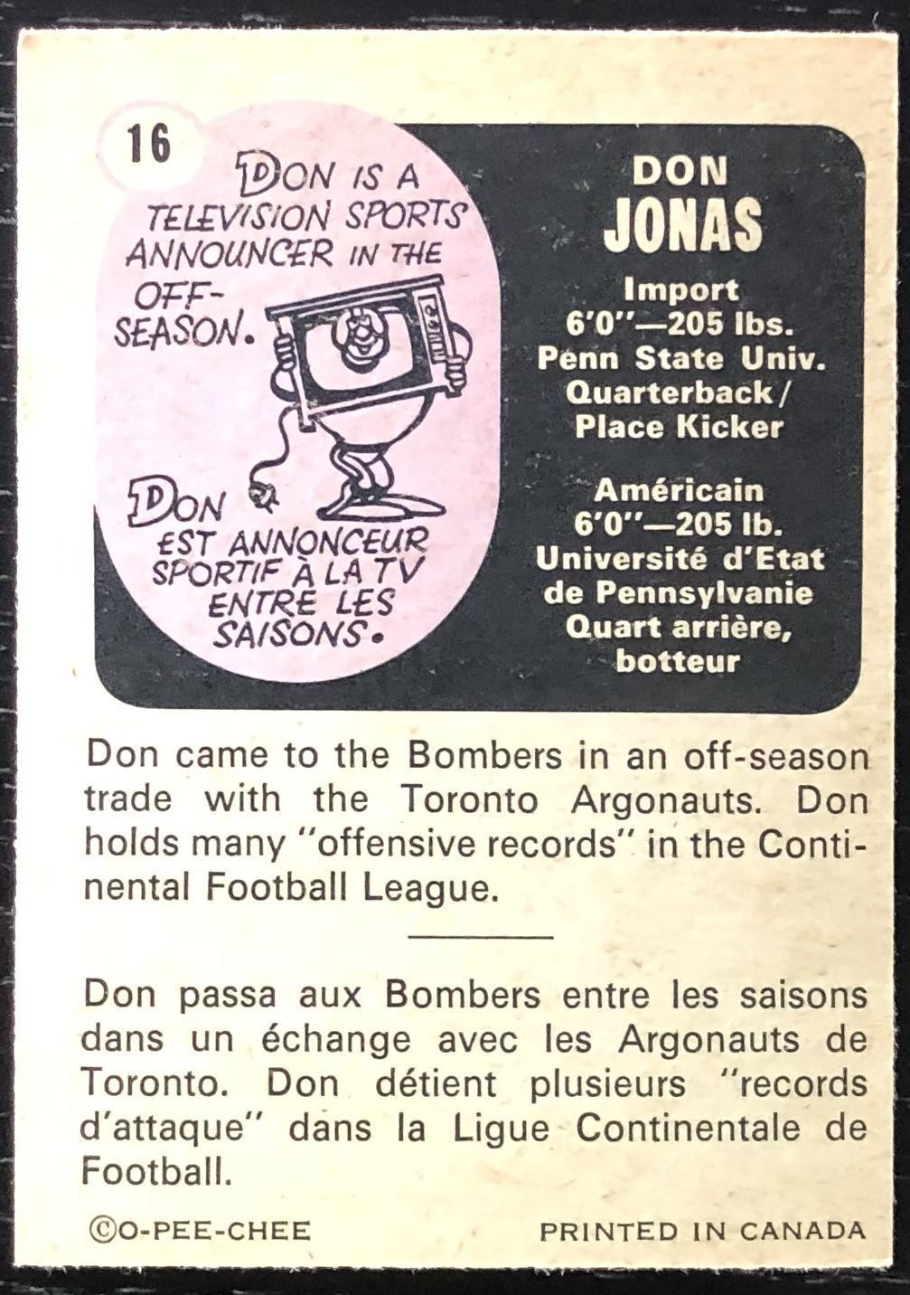 Card #16 CFL, football, vintage, hall of fame, OPC