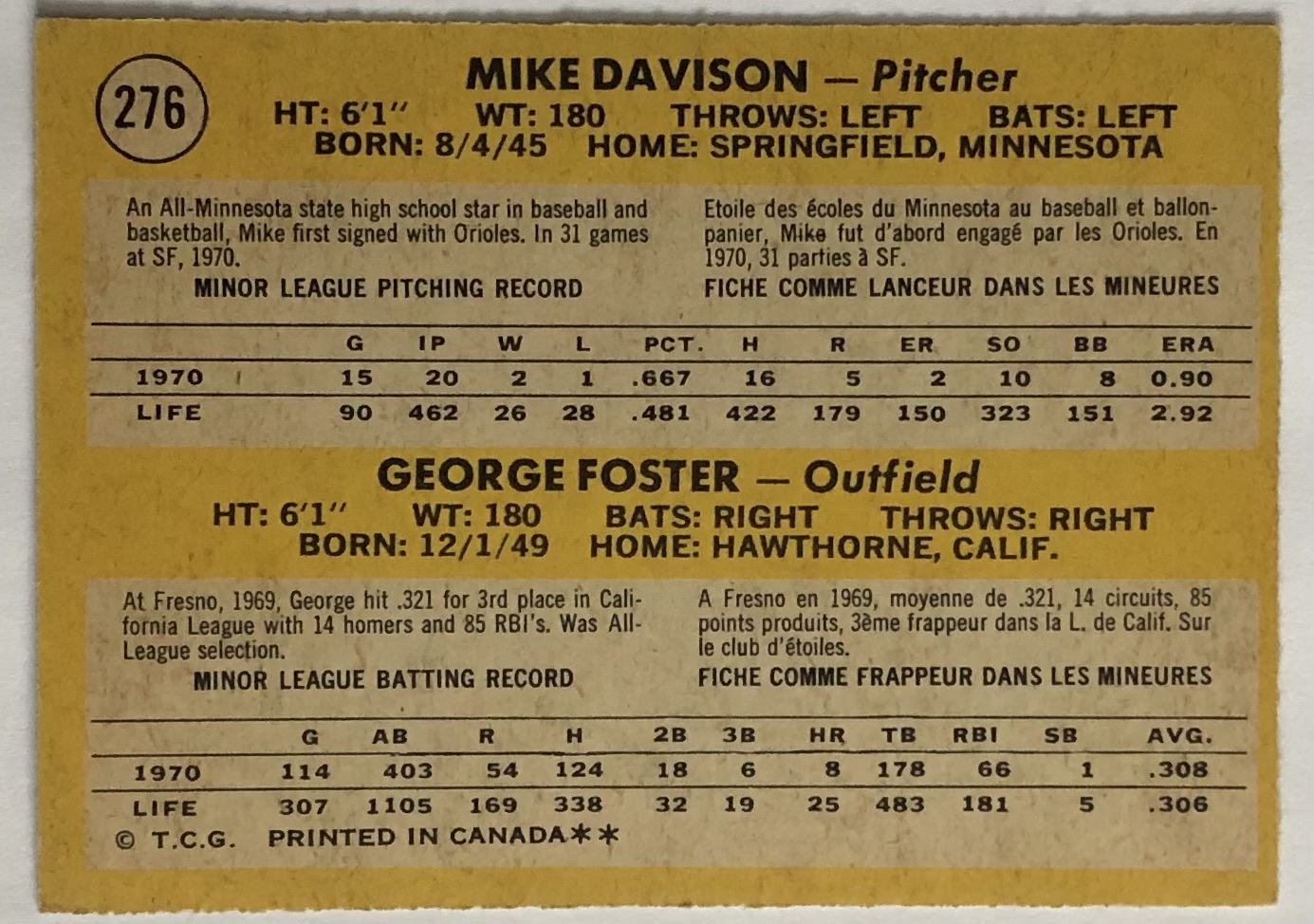 Card #276 mlb, rookie, baseball, OPC, vintage