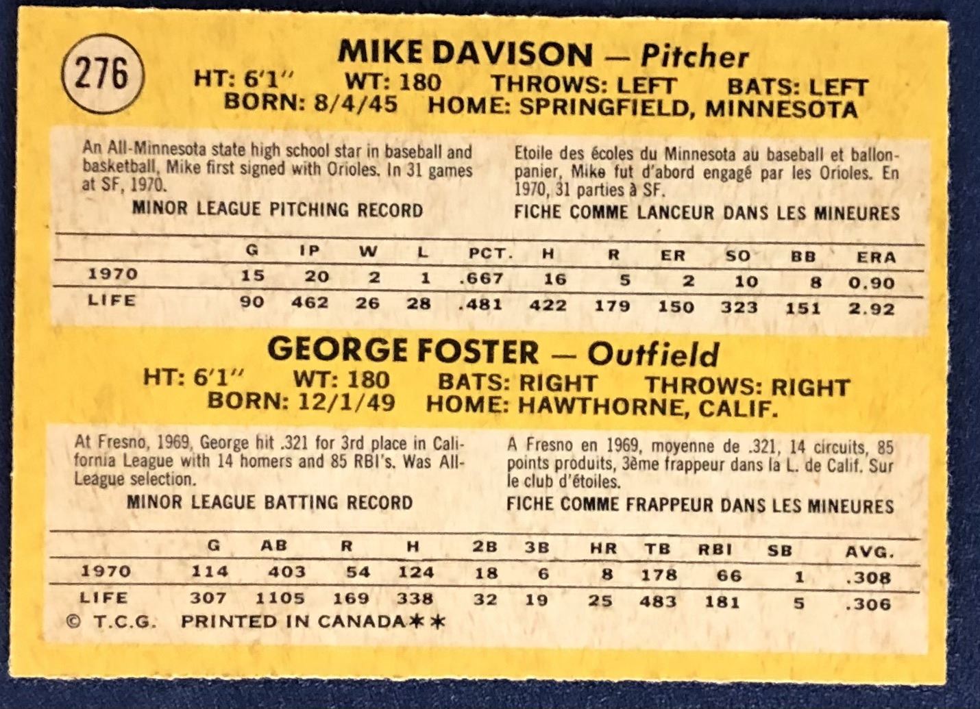 Card #276 vintage, MLB, baseball, OPC