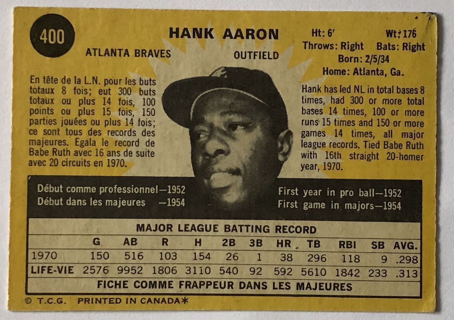Card #400 baseball, vintage, hall of fame, OPC