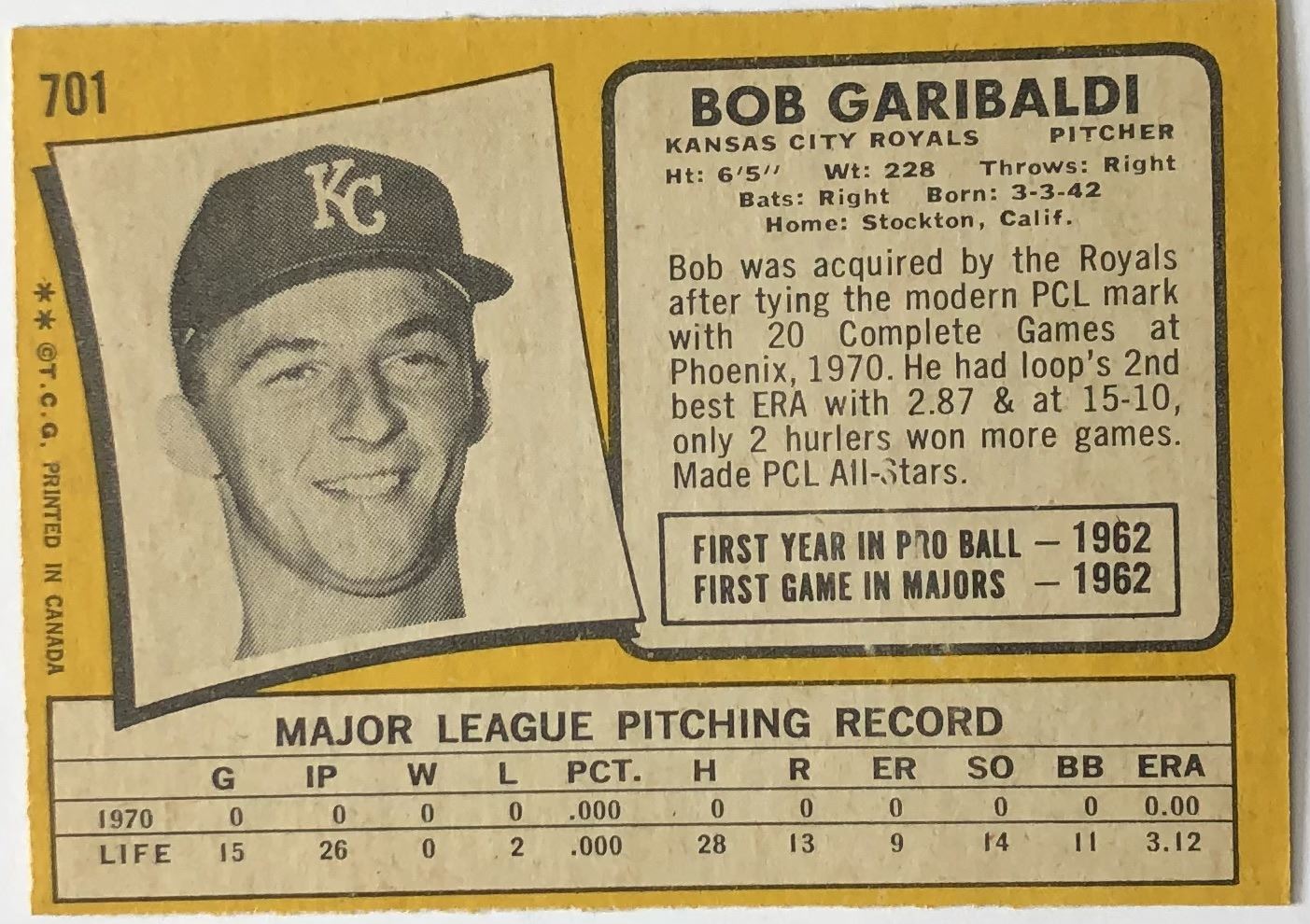 Card #701 MLB, baseball, OPC, vintage, rookie