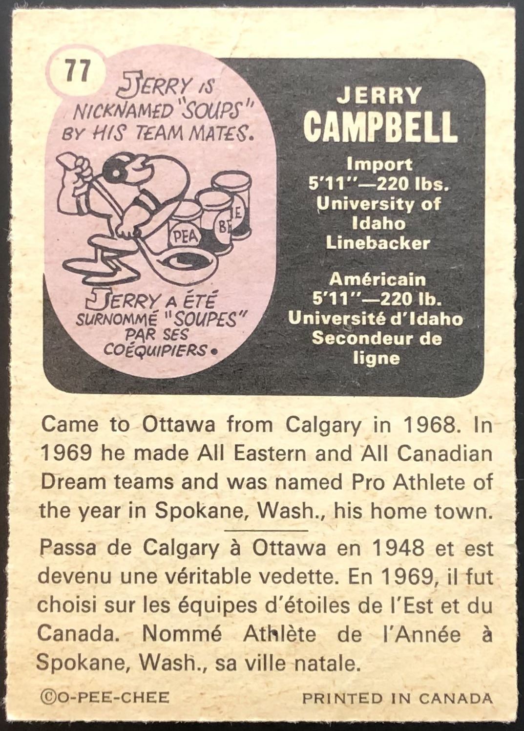 Card #77 (crease) CFL, football, vintage, OPC, hall of fame