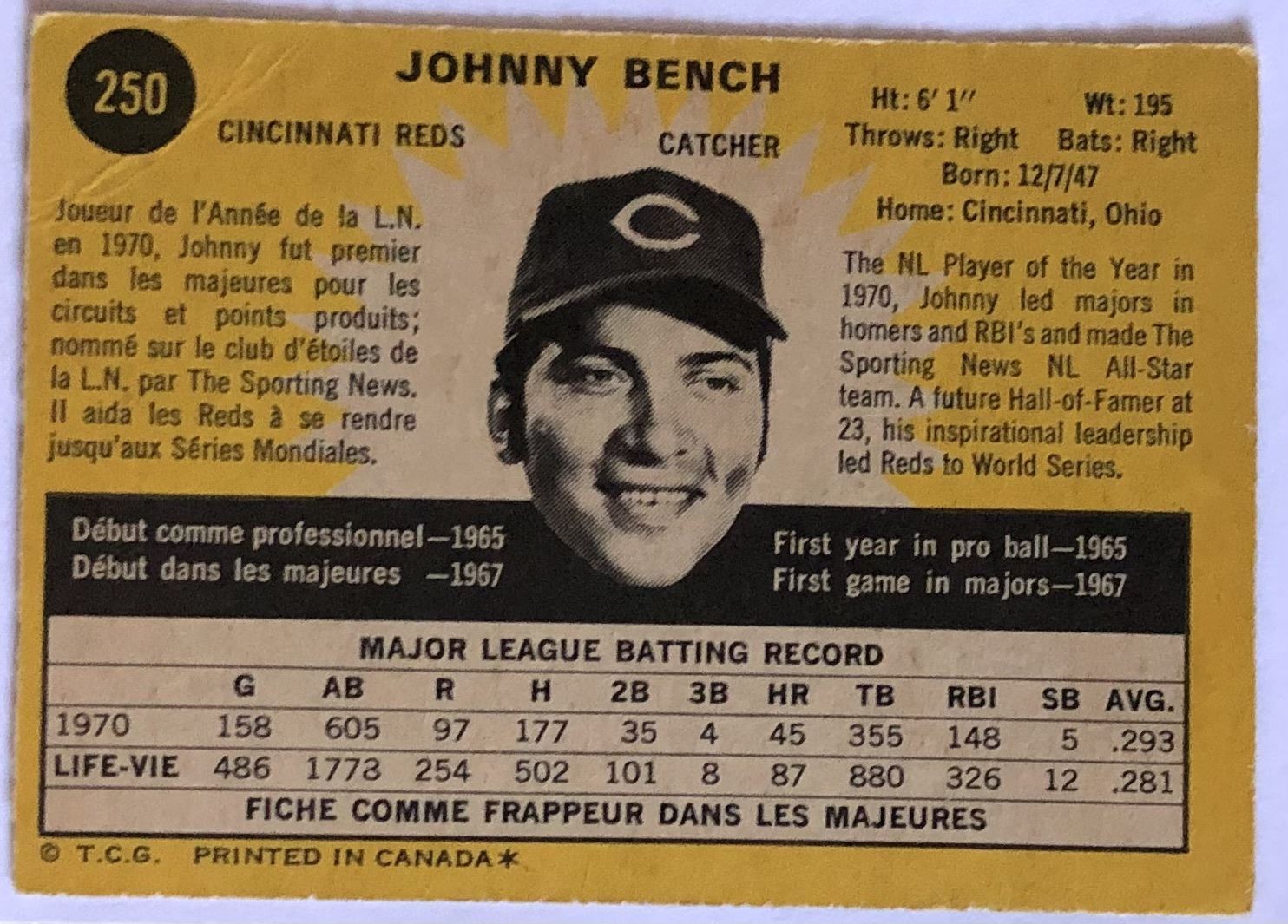 Card #250, crease top left corner vintage, MLB, baseball, hall of fame, OPC