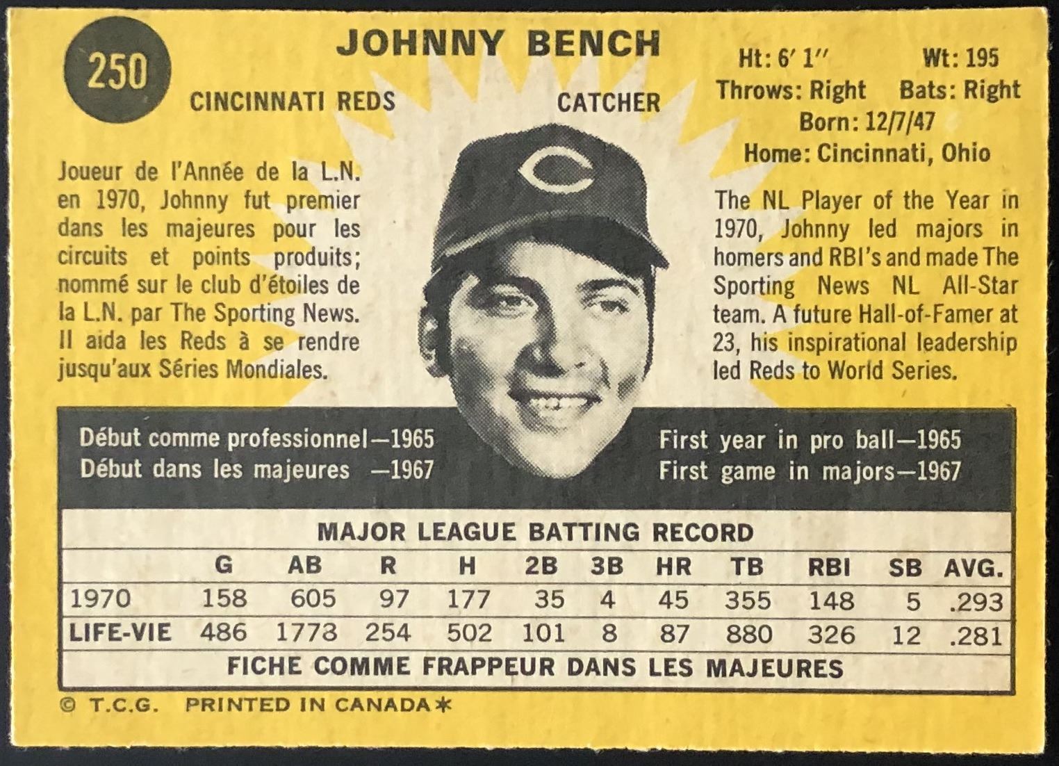 Card #250 OPC, MLB, baseball, vintage, hall of fame