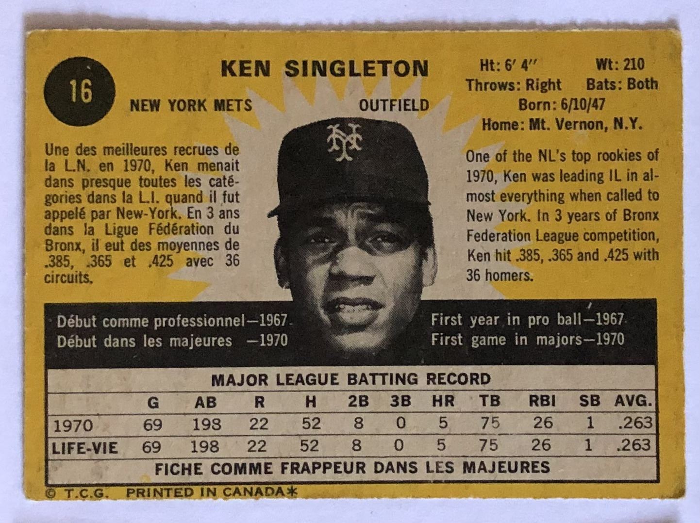 Card #16 vintage, MLB, baseball, rookie, OPC