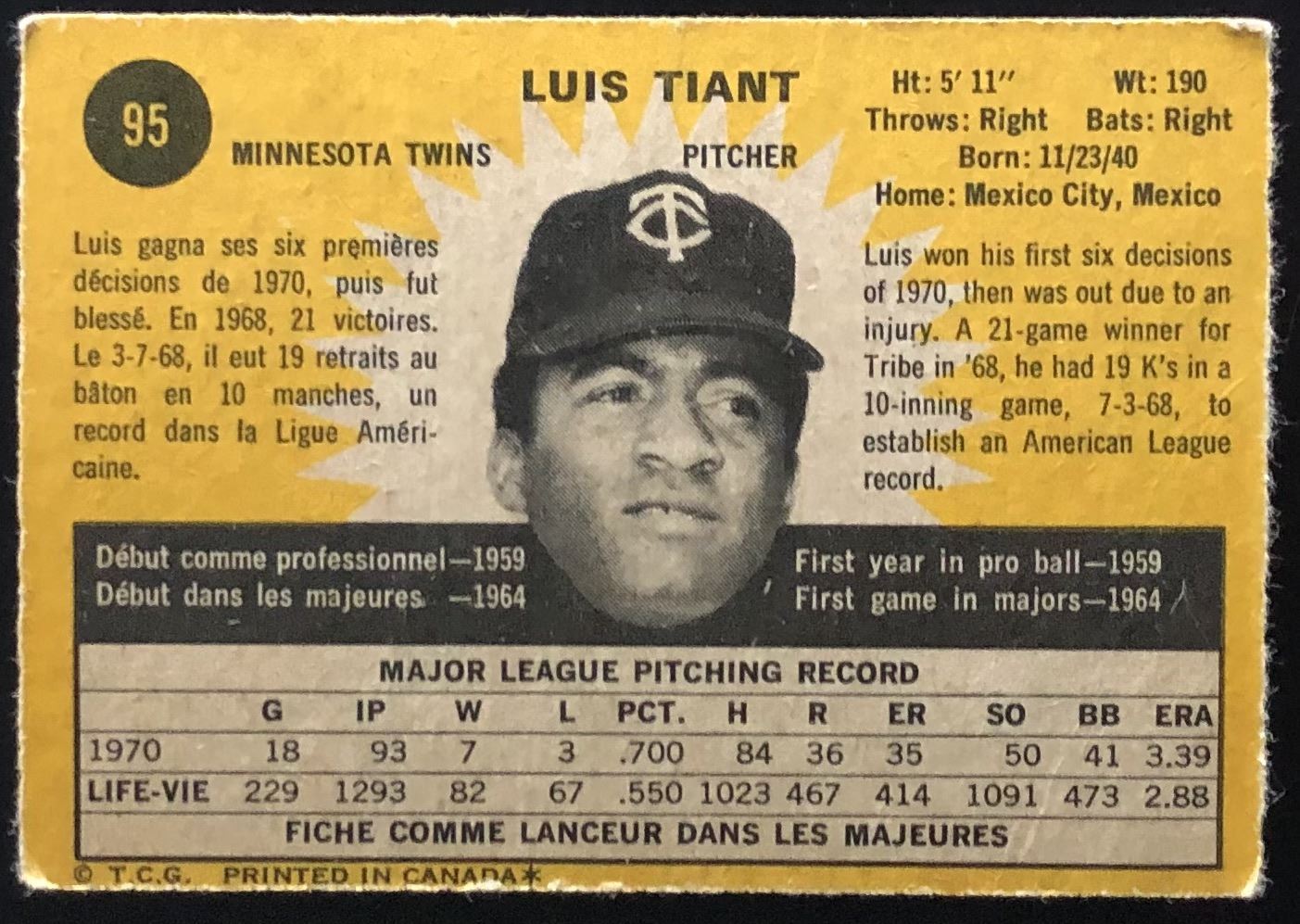 Card #95 baseball, MLB, vintage, OPC, hall of fame