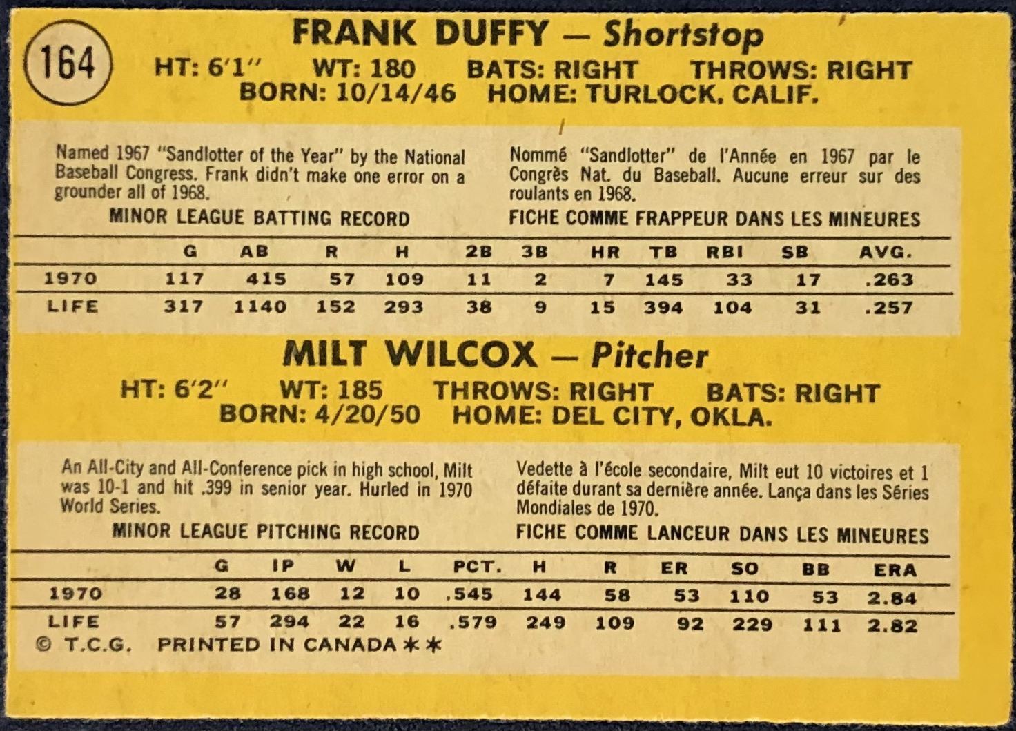 Card #164 MLB, baseball, vintage, OPC, rookie