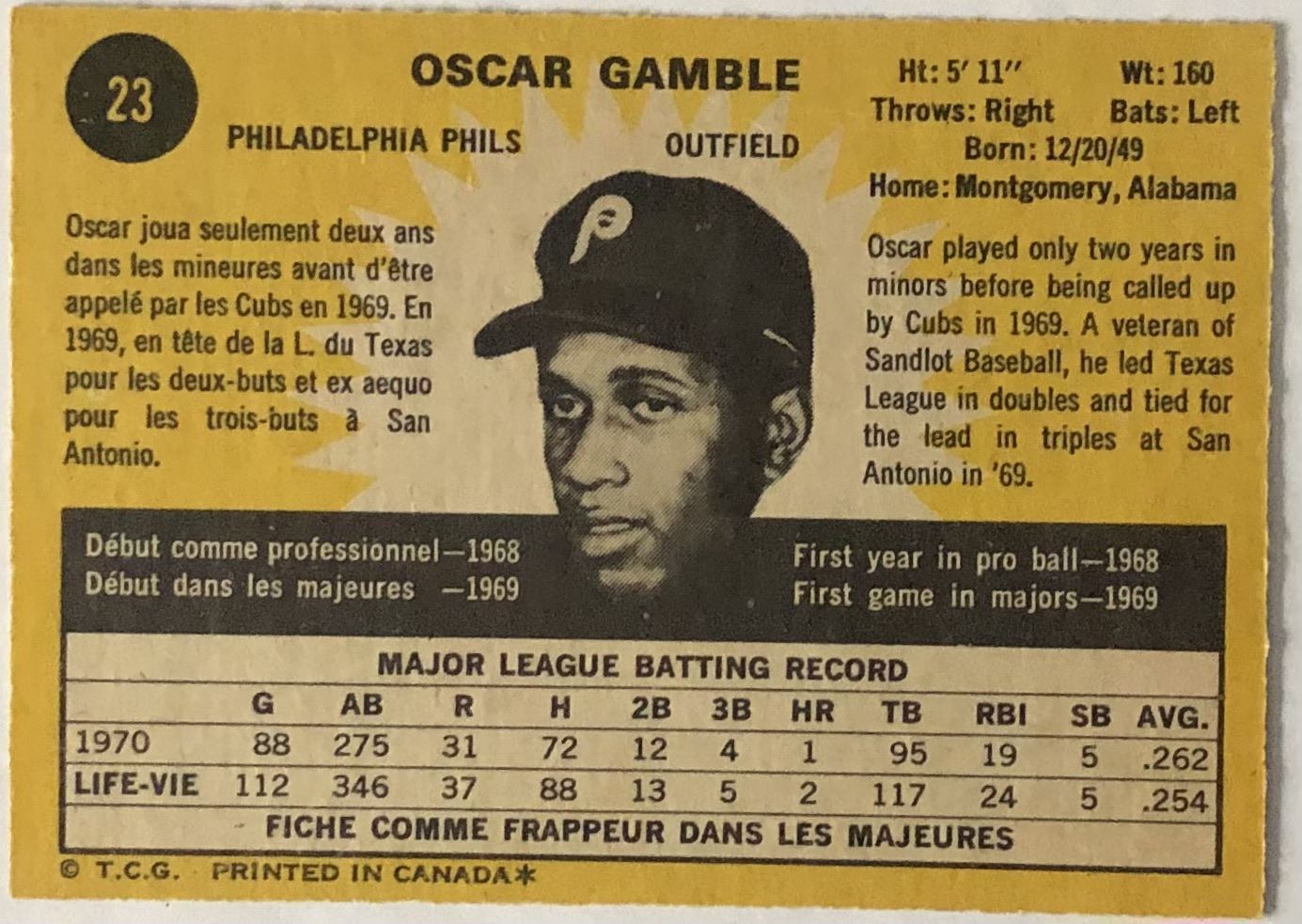 Card #23 MLB, baseball, vintage, OPC, rookie