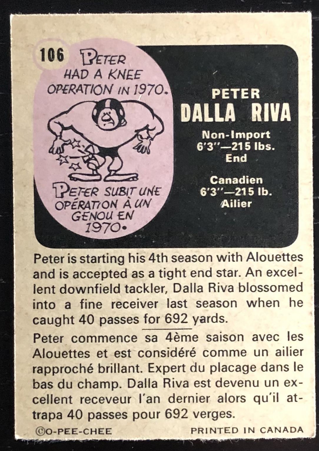 Card #106 CFL, football, vintage, hall of fame, OPC