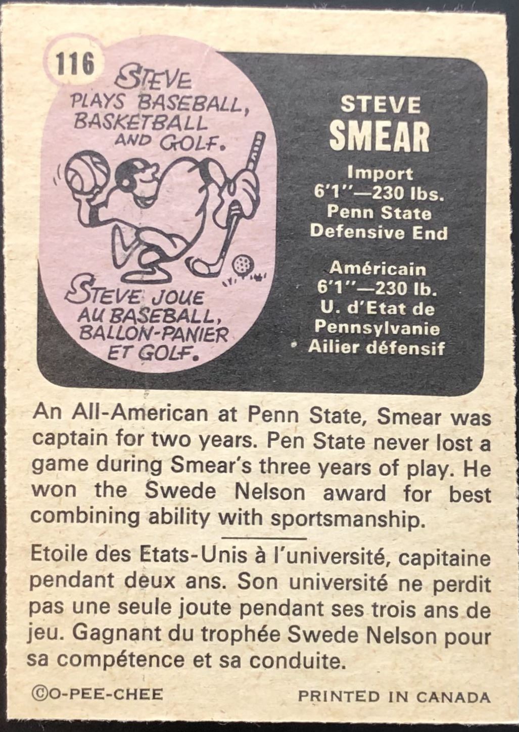 Card #116 (crease) CFL, football, vintage, OPC, hall of fame