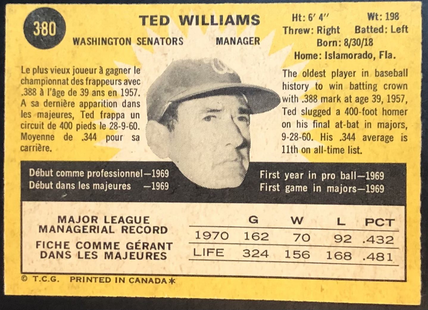 Card #380 MLB, baseball, OPC, vintage, hall of fame