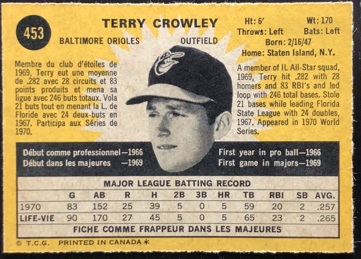 Card #453 baseball, MLB, vintage, rookie, OPC