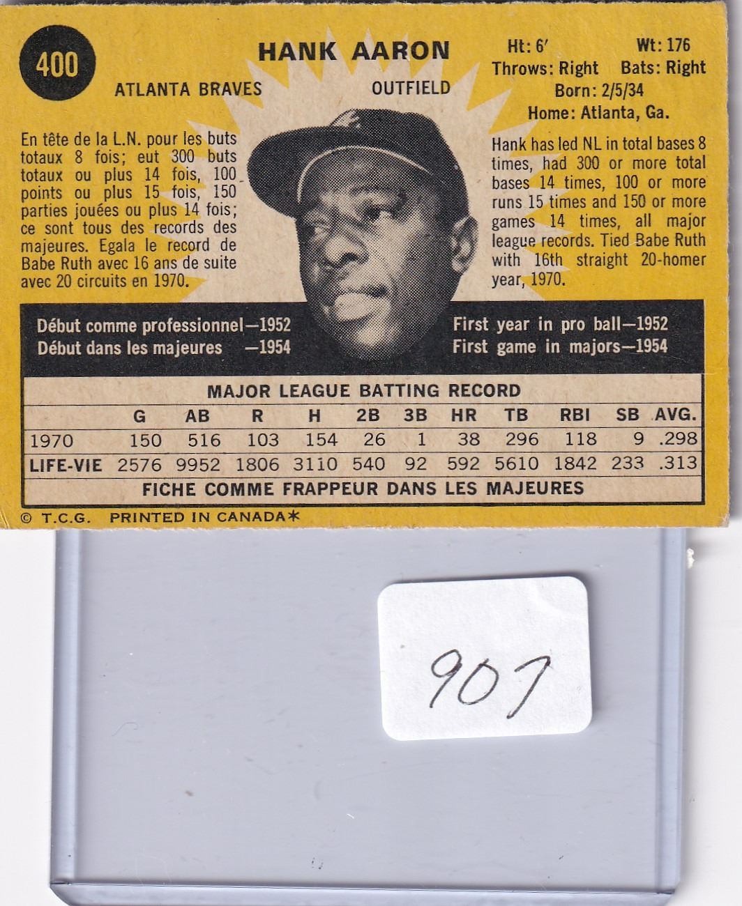 1971 OPC Hank Aaron card