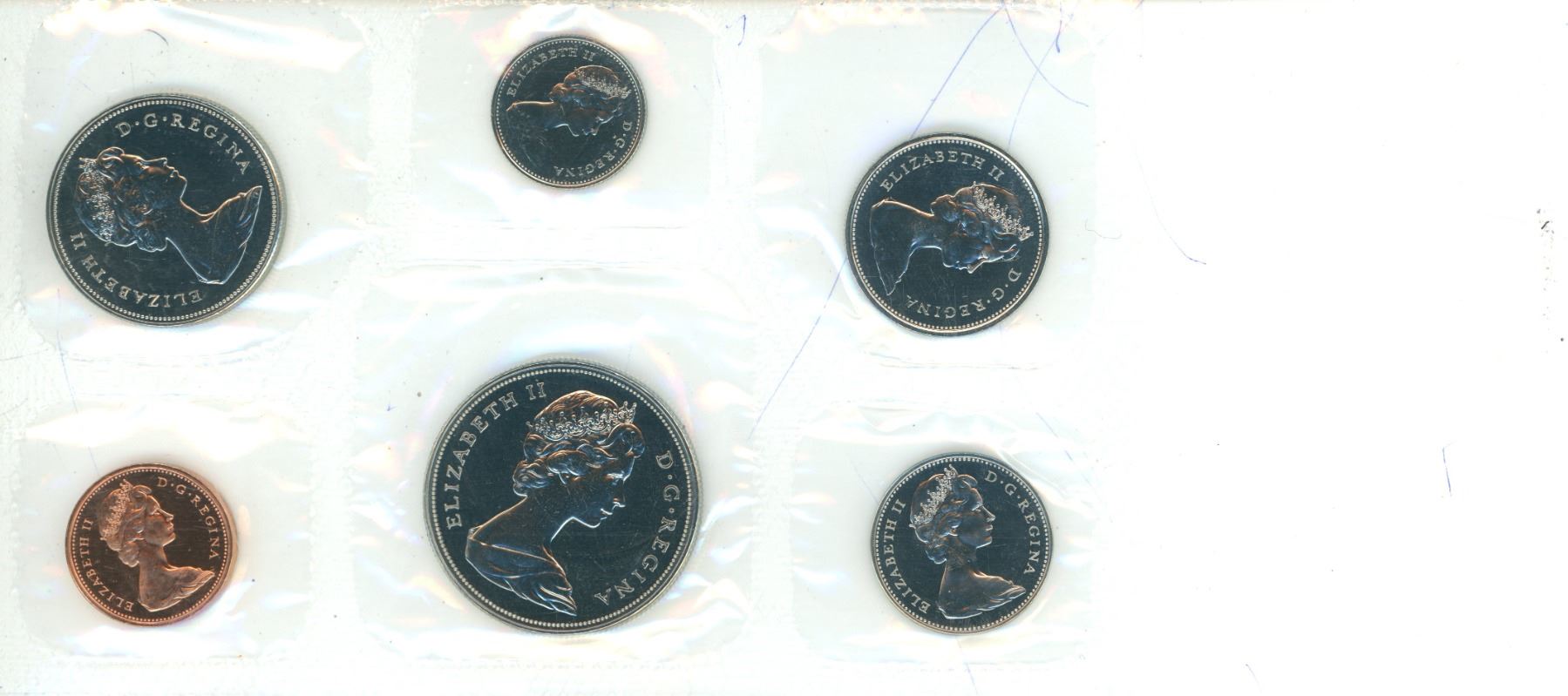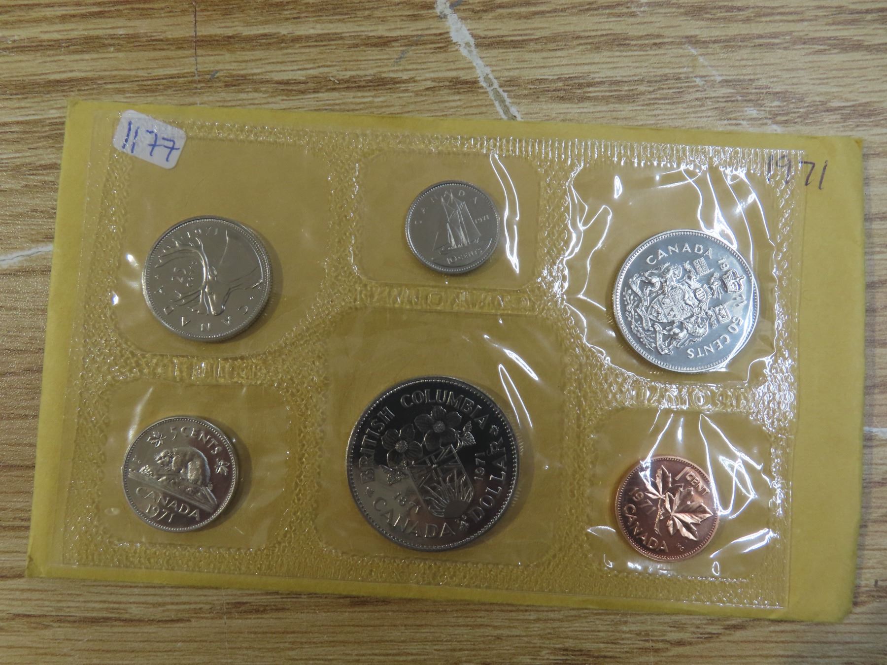 1971 Proof Like Set. 6-coin set. The dollar commemorates the 100th Anniversary of British Columbia joining Confederation.