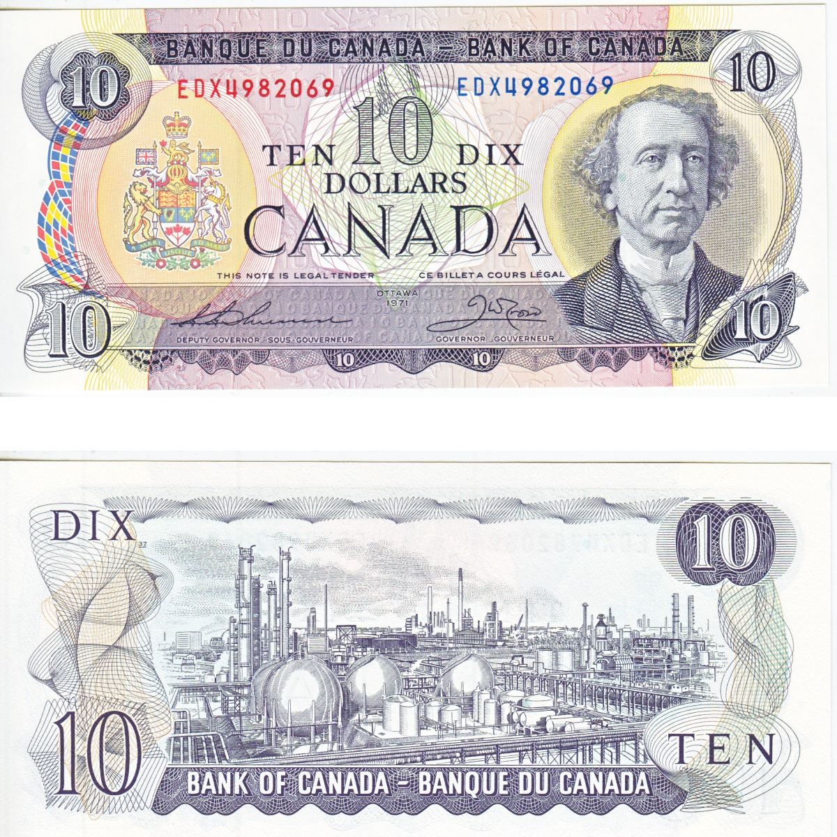 1971 Replacement $10.00 Note from the Bank of Canada; cat code BC-49eA, Thiessen-Crow signatures, Pr