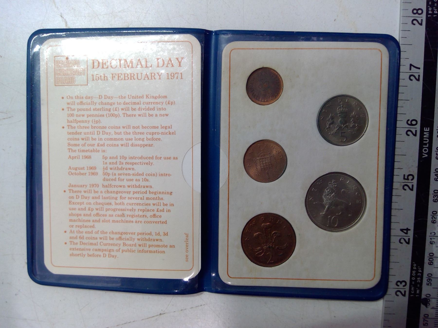 1971 Royal Mint Britain’s First Decimal Coins. 5-coin set. Housed in its original RM packaging.