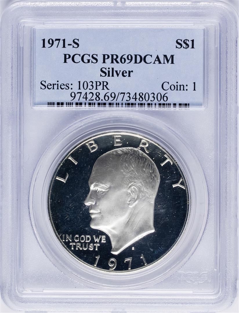One 1971-S $1 Ike Eisenhower Proof Silver Dollar Coin PCGS PR69DCAM. PCGS Graded.