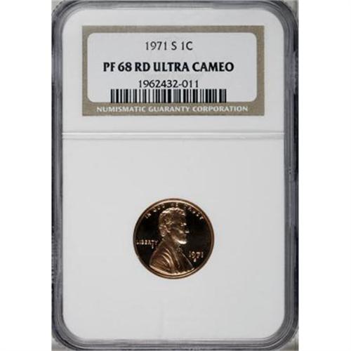 <B>1971-S 1C PR68 Deep Cameo NGC.</B></I> NGC Census: (121/25). PCGS Population (122/5). Numismedia Wsl. Price for NGC/PCGS coin in PR68: $140. (#93434)<BR><BR><b>Shipping:</b> Coins & Currency (<a target="_blank" href="http://www.heritageauctions.com/common/shipping.php">view shipping information</a>)