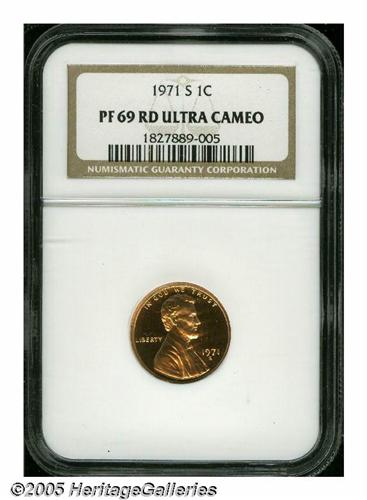 <B>1971-S<1C> PR69 Ultra Cameo NGC.</B></I> Brilliant brassy-copper surfaces display a strong cameo appearance. Sharply struck, with surfaces that are virtually unimprovable.