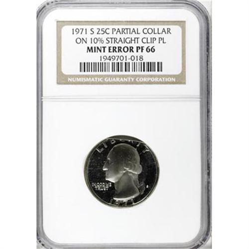 <B>1971-S 25C Washington Quarter--Partial Collar on a 10% Straight Clip Planchet--PR66 NGC.</B></I> <BR><BR><B>Coin Engraver:</B> John Flanagan<BR><BR><b>Shipping:</b> Coins & Currency (<a target="_blank" href="http://www.heritageauctions.com/common/shipping.php">view shipping information</a>)