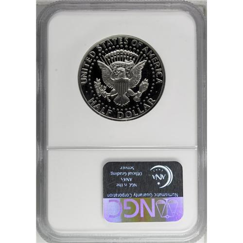 <B>1971-S<50C> PR69 Ultra Cameo NGC.</B></I> Fully struck and nearly pristine, with deeply mirrored inky-black fields and thickly frosted snow-white devices. A couple of tiny marks near Kennedy's ear deny perfection. Census: 8 in 69 Ultra Cameo, 0 finer (9/06).