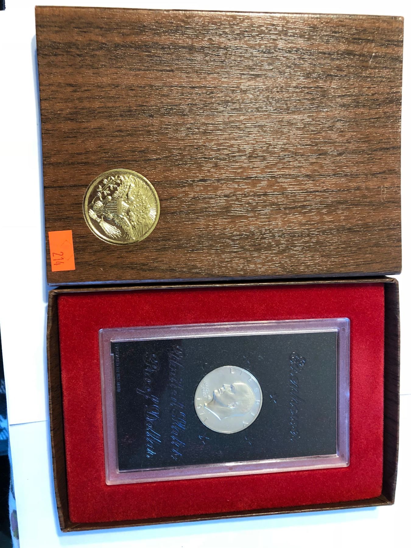 1971 S Silver Eisenhower Dollar in Brown Box with US Seal